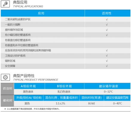 该产品已在国际、国内知名的独立实验室,根据广泛认可的国内、外耐火标准成功进行多次贯穿封堵测试。无论是否使用永久性模板皆可达到3小时耐火等级。满足目前中国国内所有核电堆型的耐火要求。